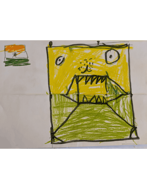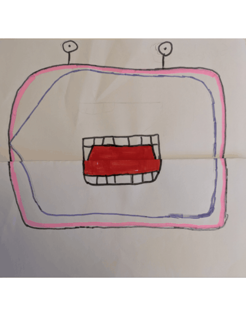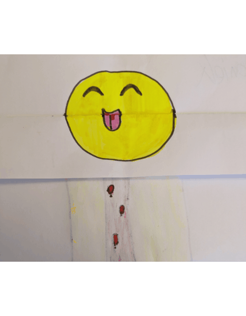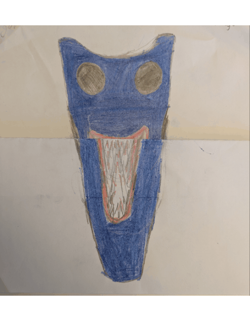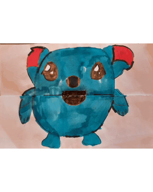 Ein Klappbild, was ist das eigentlich? Zum einen war es das Thema im Kunstunterricht der 4b und der 4c. Zum anderen ist es eine kreative Kunstidee, die ich mir ehrlich gesagt von einem Schüler abgeschaut habe! Vor etwa einem Jahr zeigte mir ein Schüler in der Hausaufgabenbetreuung stolz sein Kunstwerk: Ein gefaltetes Blatt Papier, auf dem ein harmloses Fantasietier gemalt war. Klappte man das Papier jedoch auf, konnte man in das riesige Maul des Ungeheuers blicken!