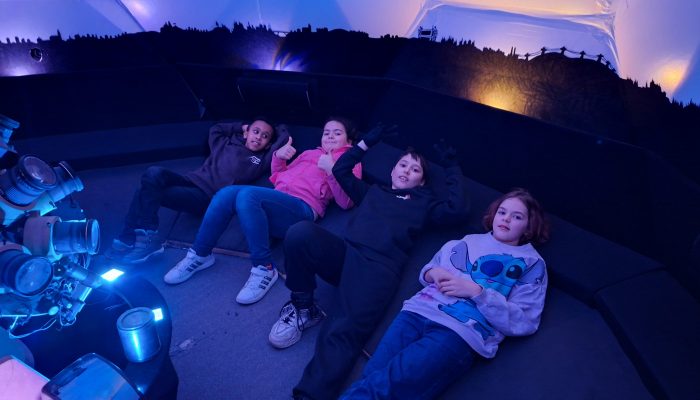 Im Keller sahen wir eine tolle Präsentation in einem Planetarium, welches Kinder des Gymnasiums selbst gebaut haben.