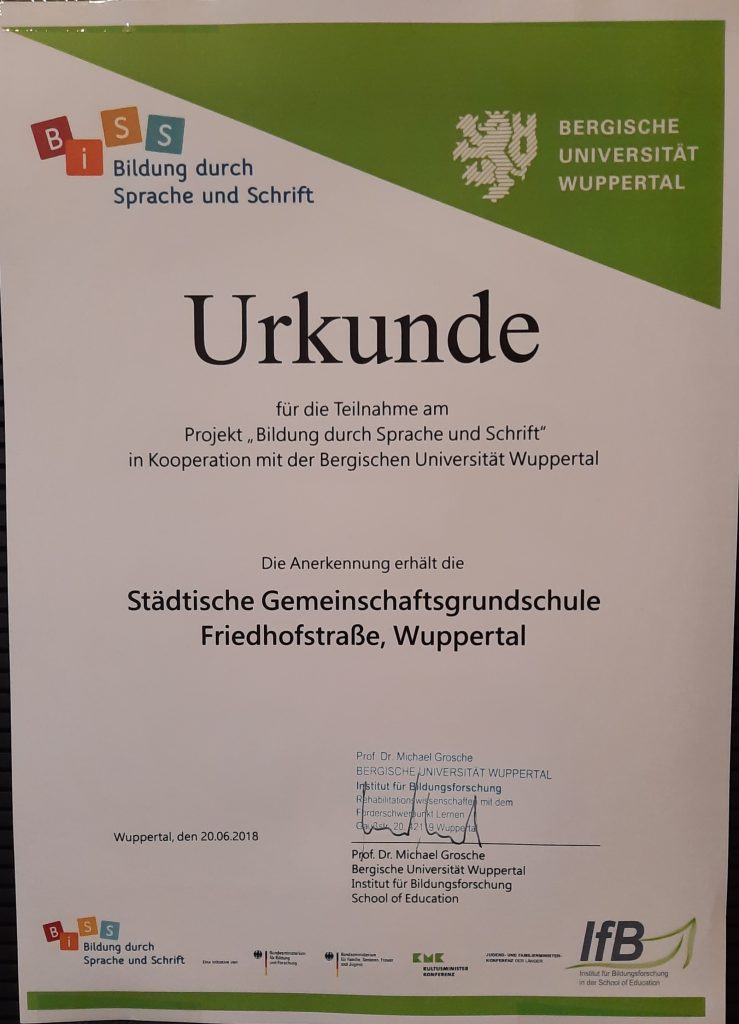 Teilnahme Projekt „Bildung durch Sprache und Schrift“