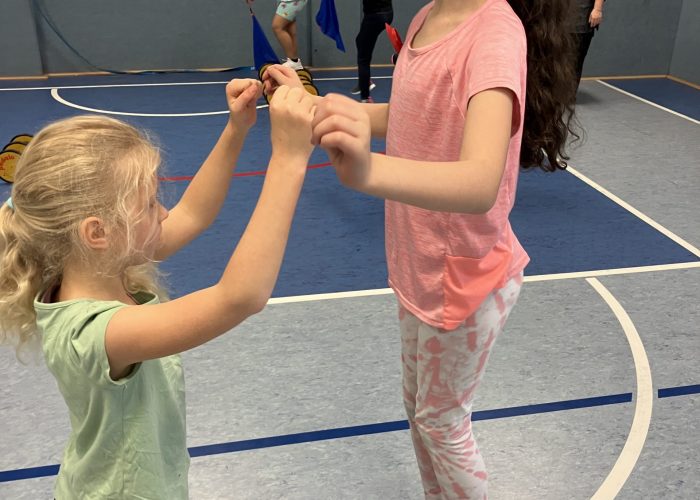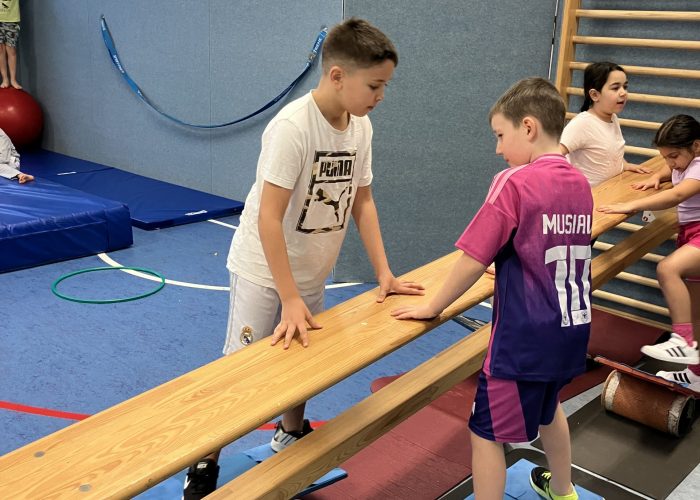 Im Klassenverbund lernen sich die Kinder im Bewegungsraum der Schule (Jahrgang 2) und der Turnhalle im Cevi (Jahrgänge 3 und 4) wöchentlich auf unterschiedliche akrobatische, fantastische und zauberhafte Weise kennen.
