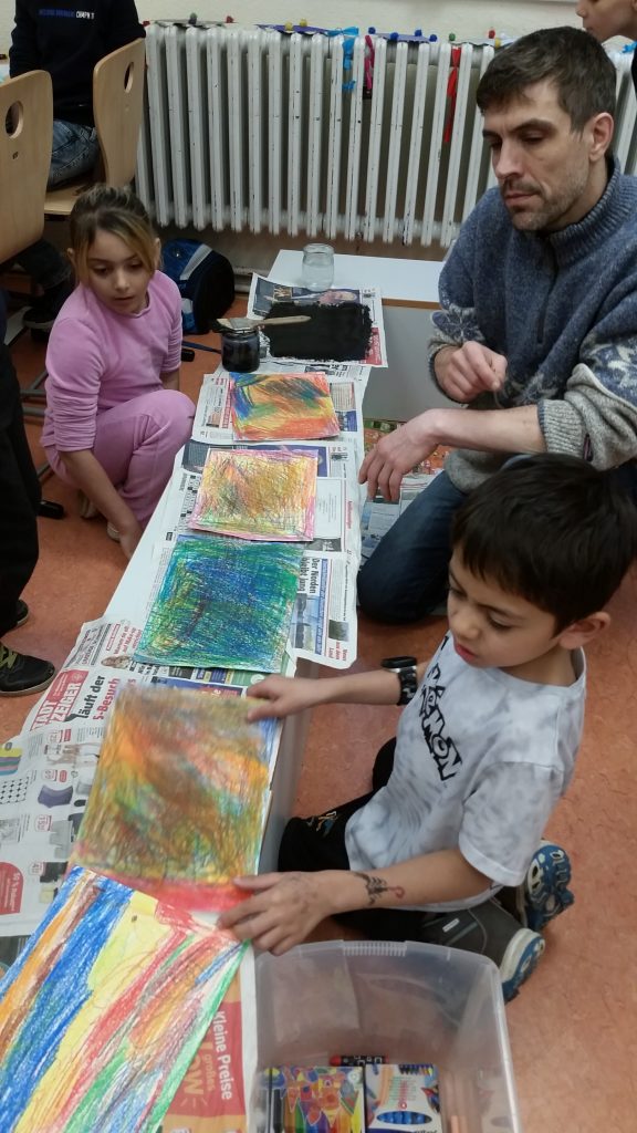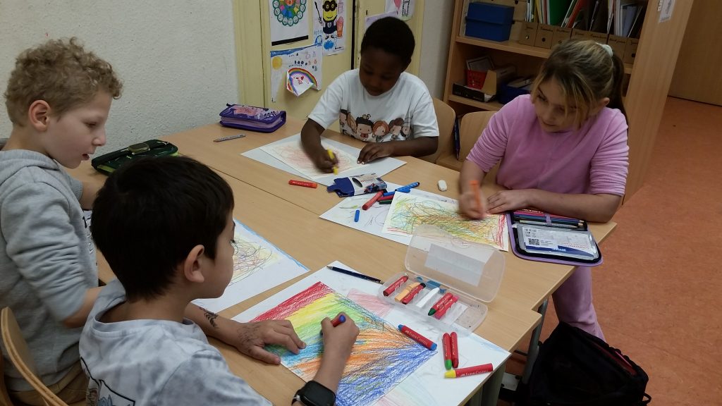 Beim Kunstprojekt des Vereins Kultur am Vormittag lassen die Kinder, nach einem thematischen Impuls, ihrer Kreativität freien Lauf. Auf verschiedenen Malgründen (z.B. Papier, Pappe, Leinwand etc.) und mit diversen Materialien (Stifte, Pinsel, Wachsmalern etc.) sind der Fantasie keine Grenzen gesetzt. So werden beispielsweise Buchstaben eingekleidet, oder in Form von verschiedenen Tieren zum Leben erweckt.