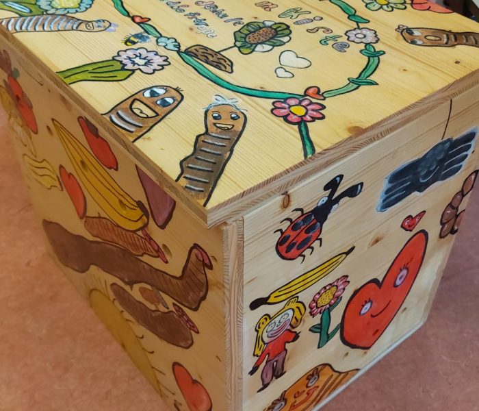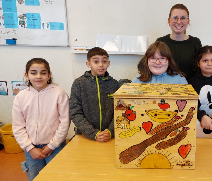 In gemeinschaftlicher Arbeit haben wir als schulinternes Projekt eine Wurmkiste mit echten Kompostwürmern gebaut. Wir haben geschraubt, geschliffen, eingeölt, angemalt, versiegelt, eingerichtet und beobachtet. Das alles hat großen Spaß gemacht und wir sind sehr stolz auf unsere Wurmkiste!